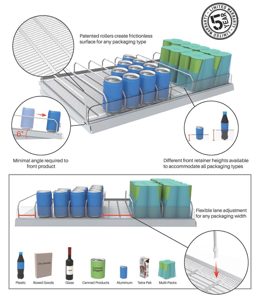 Roller shelving aligns with this shift. It allows cooler racks to respond automatically to customer interaction, rather than requiring constant manual correction.